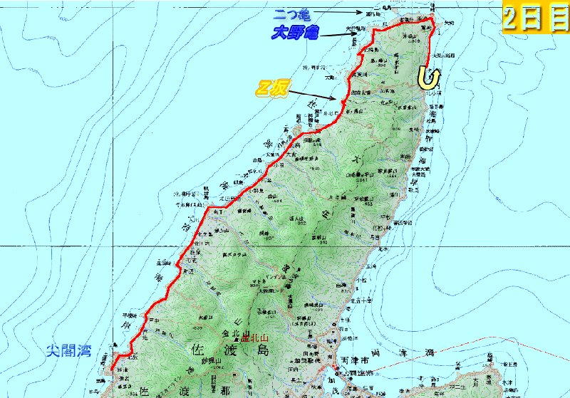 その少し手前に大野亀、二ツ亀といった見所があるようだ。 |
