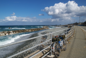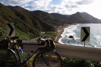 来る前に実は佐渡の風景というものは写真でもあまり見たことが無く、自分の中でいろいろと想像していたのだが、定まったイメージはなかった。でも、恐らく北の海岸沿いは自分が求めているような荒々しい海岸のような気がして、1週はできなくても北のほうだけは走ろうと決めていた。だから今回は尖閣湾に宿をとって、そこから北の海岸を中心に走った。 |