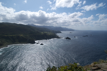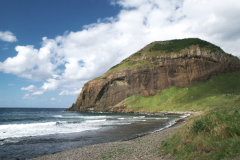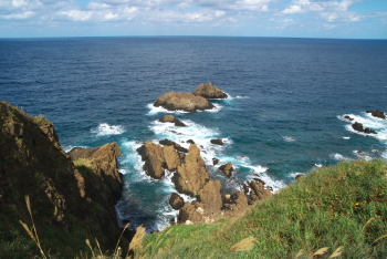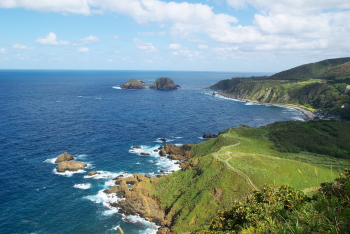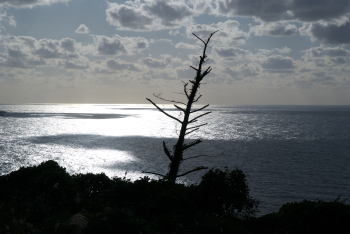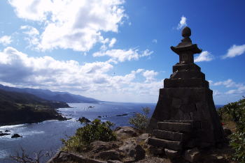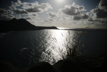 汗をかきかき登りきると、息を呑むような美しい海岸線がどこまでも続いていた。 |
