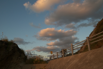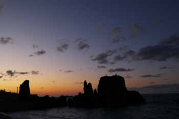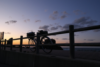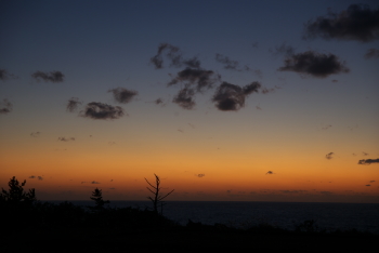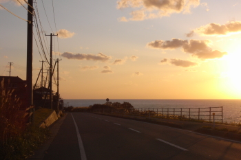 尖閣湾まであと5キロほどのところで日が沈みそうだったので、適当な場所で日の入りを眺めた。 |