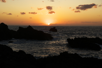 今日は雲が多かったので日の入りは無理かなと思っていたが、水平線には雲は無い。