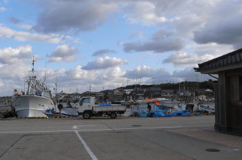 朝早いのに防波堤ではたくさんの人が釣りを楽しんでいた。 |