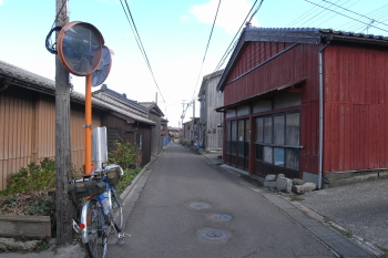 ここからクルリと進路を南へ転じ、鷲崎の街を抜けて両津へ向かって道が延びてゆく。