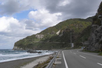 降りると、あとは海岸のヘリをへばり付くように走ってゆく。