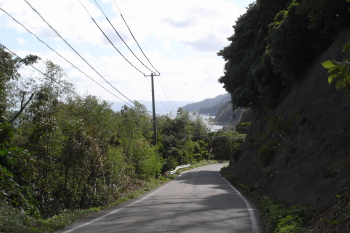 Z坂を上ってしばらく風光明美な高台の集落をぬけてゆく |